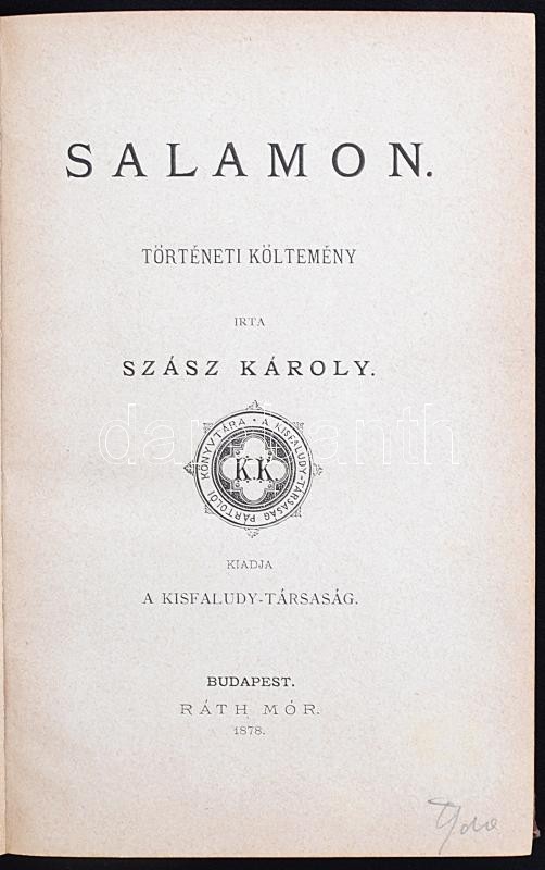 Szász Károly: Salamon. Történeti költemény. Bp., 1878, Ráth Mór. Kicsi... https://www.darabanth.com/de/253-Fernauktion/253.0/Bucher-Landkarten-Drucksachen/Bucher-Sonstige-Raritaten~400032/Szasz-Karoly-Salamon-Torteneti-koltemeny-Bp-1878-Rath-Mor-Kicsit-kopott-aranyozott-d~II1224857