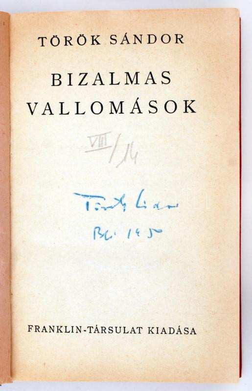 Török Sándor: Bizalmas vallomások. Aláírt példány! Bp., é.n., Franklin... https://www.darabanth.com/de/253-Fernauktion/253.0/Bucher-Landkarten-Drucksachen/Bucher-Sonstige-Raritaten~400032/Torok-Sandor-Bizalmas-vallomasok-Alairt-peldany-Bp-en-Franklin-Modern-egeszvaszo~II1226763