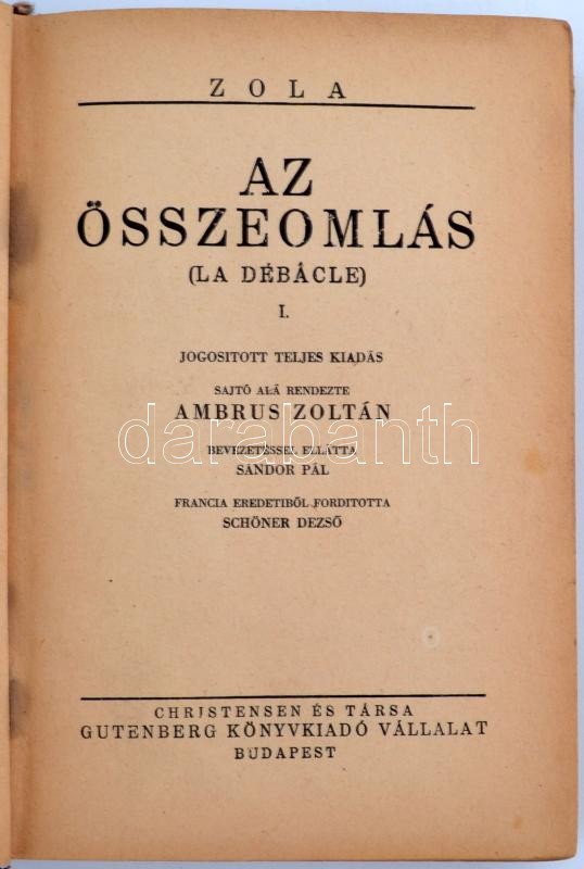 Zola, Émile: Az összeomlás 1-2. köt. Bp., é. n., Gutenberg. Kopott fél... https://www.darabanth.com/de/253-Fernauktion/253.0/Bucher-Landkarten-Drucksachen/Bucher-Sonstige-Raritaten~400032/Zola-Emile-Az-osszeomlas-1-2-kot-Bp-e-n-Gutenberg-Kopott-felvaszon-kotesben-a-kC3~II1229997