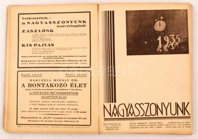 1934 A Nagyasszonyunk c. újság fél évfolyama bekötve. https://www.darabanth.com/de/253-Fernauktion/253.0/Bucher-Landkarten-Drucksachen/Drucksachen~400042/1934-A-Nagyasszonyunk-c-ujsag-fel-evfolyama-bekotve~II1224638
