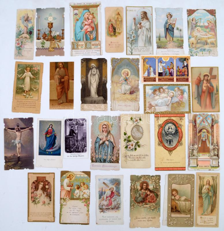Beschreibung: cca 1900-40 Vegyes szentkép tétel benne dombornyomott és kézzel festett is, különböző méretben és minőségben, 30db, cca 11x6cm