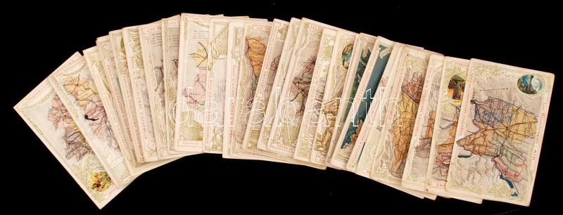 cca 1910 Franciaország megyéi. Csokoládé gyűjtőkártya gyűjtemény. Összesen 28 db kártya a megyék adataival / cca 1910 Counties of France. 28 chocholate cards with all the datas of the counties