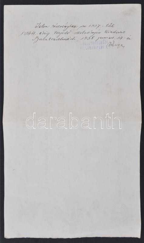 Beschreibung: Balatonalmádi 1932. "A Balatonalmádi Villamosipari Részvénytársaság" részvénye 10P-ről T:II-