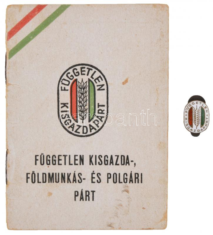 ~1920-1930. "Független Kisgazdapárt" zománcozott fém gomblyukjelvény (15x12mm) + tagsági igazolvány T:2