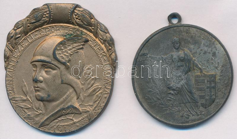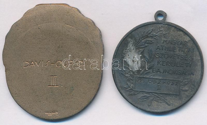 ~1920-1930. "Magyar Athletikai Szövetség Kerületi Bajnoksága" fém díjérem (35mm) + "Pénzintézeti Sportegyletek Ligája 1912" Br díjplakett "LUDVIG" gyártói jelzéssel (44,5x39mm) T:2,2-