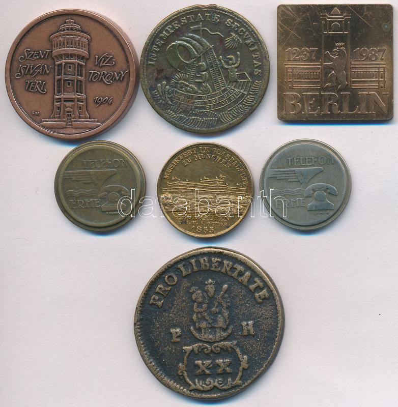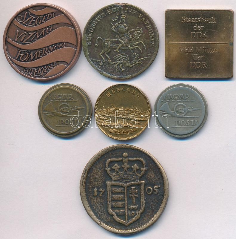 7db-os vegyes zseton, emlékérem tétel, 1705. XX Poltura "II. Rákóczi Ferenc" öntvény másolat (copy), Fritz Mihály (1947-) 1DN "Szent István téri Víztorony 1904 / Szegedi Vízmű Főmérnöki Értekezlet" Br emlékérem (30mm) T:vegyes