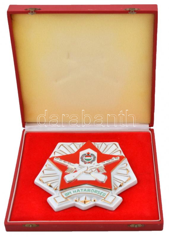 Beschreibung: ~1970. "BM Határőrség" jelzett hollóházi porcelán plakett adományozói dísztokban (155-159mm) T:1