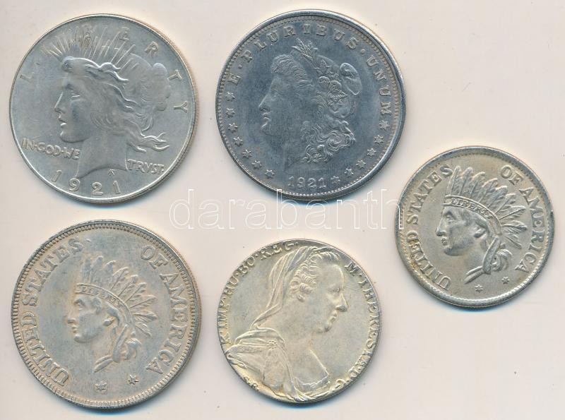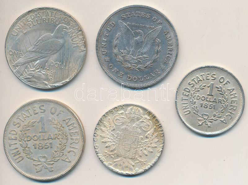 Beschreibung: 5db vegyes magyar és külföldi ezüstpénz Fe hamisítványa T:2-