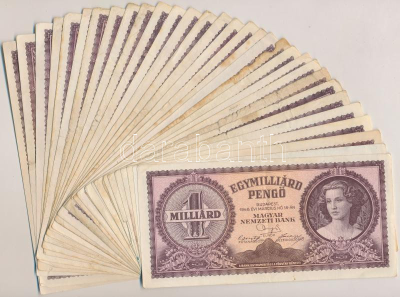 1946. 1.000.000.000P (30x) T:vegyes https://www.darabanth.com/de/253-Fernauktion/253.0/Numismatik/Ungarische-Banknoten~200007/1946-1000000000P-30x-Tvegyes~II1226215