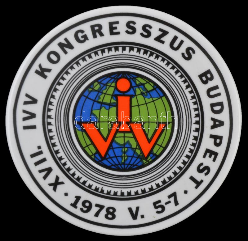 1978. "XVII. IVV Kongresszus Budapest 1978. V. 5-7." Zsolnay... https://www.darabanth.com/de/253-Fernauktion/253.0/Numismatik/Ungarische-Edelmetall-Gedenkmunzen~200009/1978-XVII-IVV-Kongresszus-Budapest-1978-V-5-7-Zsolnay-porcelan-emlekplakett-151mm-T1-~II1231136