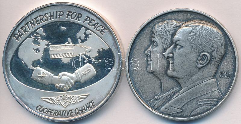 Beschreibung: 1993. "Kenderes 1993. szeptember 4." Horthy Miklós és feleségének újratemetése emlékére fém emlékérem eredeti dísztokban (40mm) + 1996. "Társulás a békéért - Partnership for Peace - Cooperative Chance" ezüstözött fém emlékérem dísztokban (42,5mm) T:1,PP felületi karc