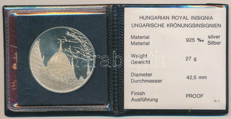 Beschreibung: Fülöp Zoltán (1951-) 1978. "Budapest - Parlament / Királyi szent ereklyék" Ag emlékérem tokban tanúsítvánnyal (27g/0.925/42,5mm) T:PP