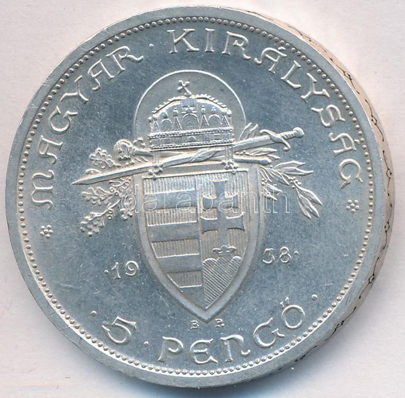 Adamo P8.1 https://www.darabanth.com/de/253-Fernauktion/253.0/Numismatik/Ungarische-Munzen~200008/1938-5P-Ag-Szent-Istvan-T2--Adamo-P81~II1229802