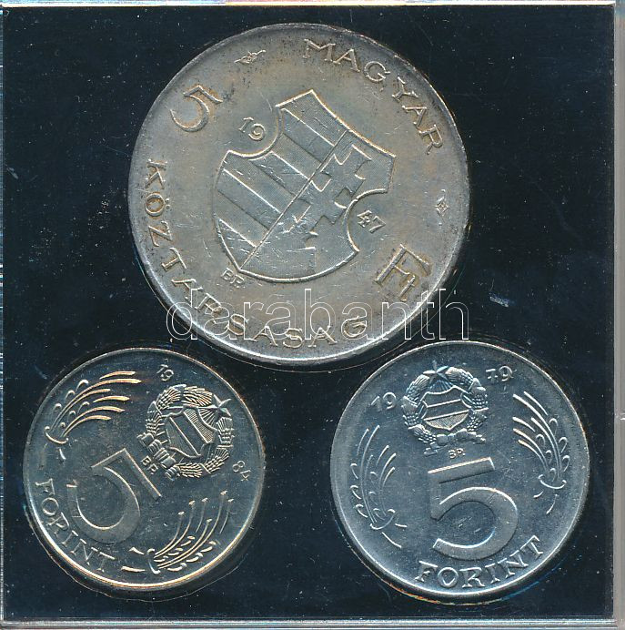 Beschreibung: 1947. 5Ft Ag "Kossuth" + 1979. 5Ft + 1984. 5Ft plasztiktokban T:2,2-