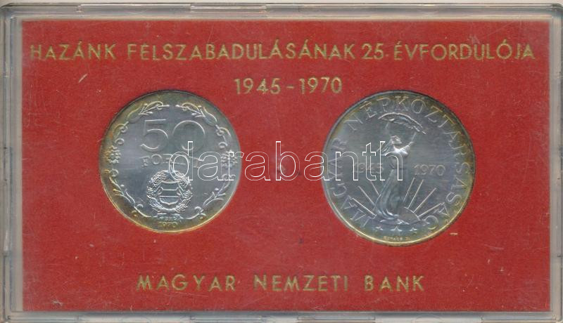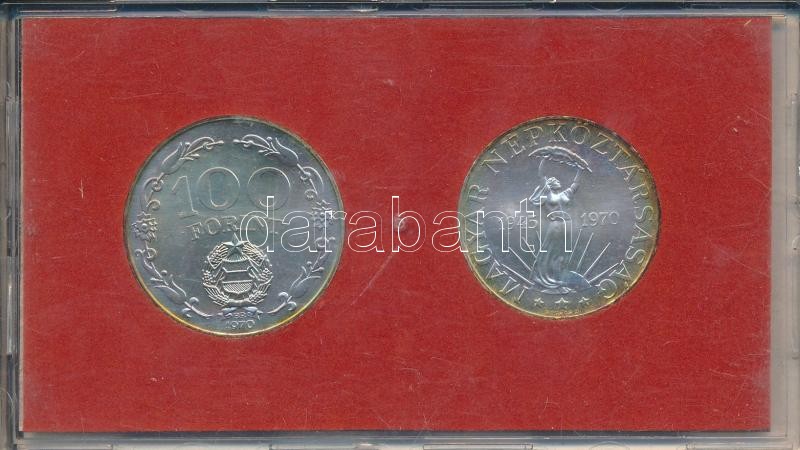 1970. 50Ft Ag + 100Ft Ag "Felszabadulás" pár, eredeti MNB pl... https://www.darabanth.com/de/253-Fernauktion/253.0/Numismatik/Ungarische-Munzen~200008/1970-50Ft-Ag-plus-100Ft-Ag-Felszabadulas-par-eredeti-MNB-plasztiktokban-piros-TBU-kis-patina~II1224811