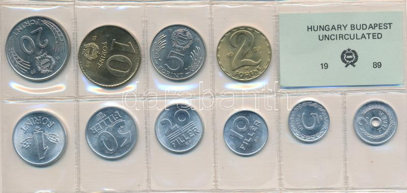 1989. 2f-20Ft 10db klf, érmés forgalmi sor fóliatokban T:1 https://www.darabanth.com/de/253-Fernauktion/253.0/Numismatik/Ungarische-Munzen~200008/1989-2f-20Ft-10db-klf-ermes-forgalmi-sor-foliatokban-T1~II1230179
