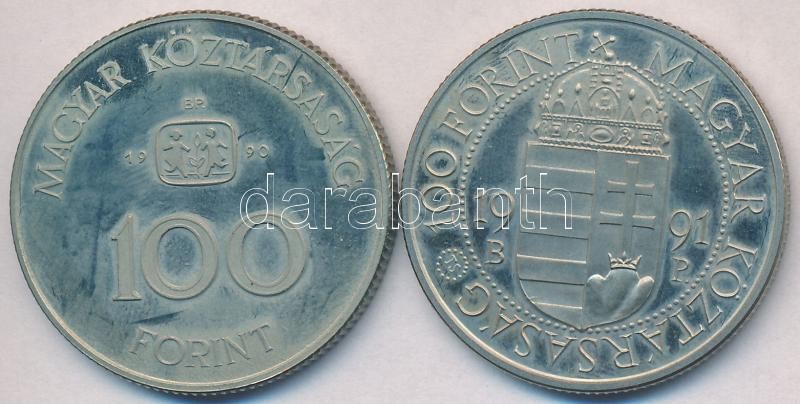 Beschreibung: 1990. 100Ft "SOS Gyermekfalu" + 1991. 100Ft Cu-Ni "II. János Pál pápa látogatása" T:2 (PP)