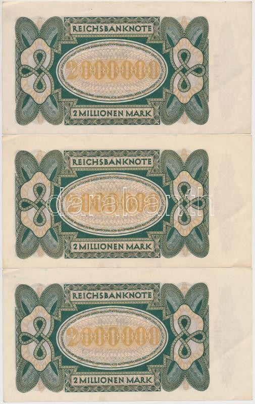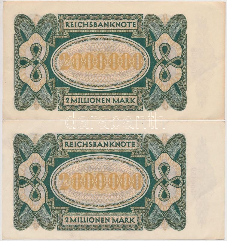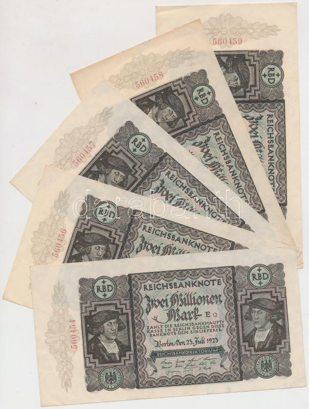 Németország / Weimari Köztársaság 1923. 20.000.000M (5x) közte 4db sorszámkövető és 1db közeli sorszám T:I-,II