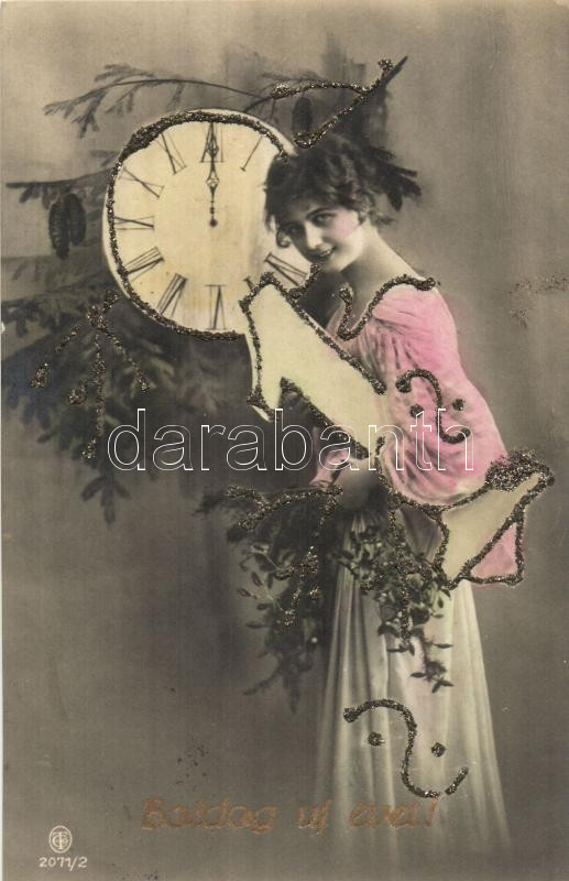 Újév / New Year, glittering postcard https://www.darabanth.com/de/253-Fernauktion/253.0/Thematik-und-Kunstlerkarten/GruC39Fkarte~32/Ujev-New-Year-glittering-postcard~II1223183