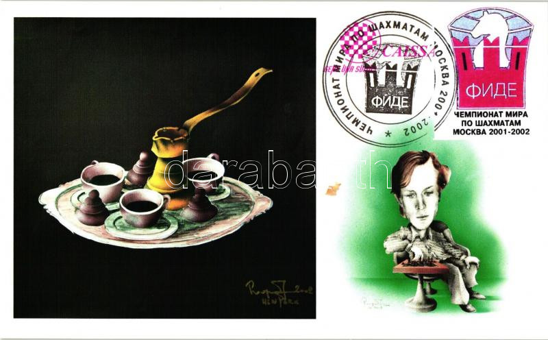 30 db megíratlan modern motívum képeslap, 3 db sakk témájú humoros grafika sorozat / 30 unused modern motive postcards, 3 series of chess themed humorous graphic arts, 'Chess Informant', 'Caissa Commerce' s: Jovan Prokopljevic