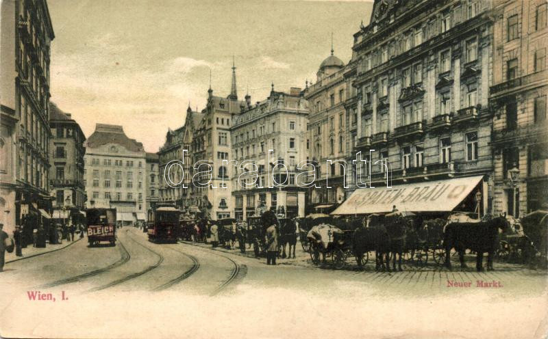 Vienna, Wien I. Neuer Markt, trams, Spaten-Bräu (EK) https://www.darabanth.com/de/253-Fernauktion/253.0/Topographische-Postkarten-und-Lose/Osterreich~72/Vienna-Wien-I-Neuer-Markt-trams-Spaten-Brau-EK~II1227939