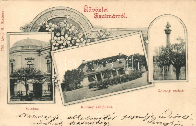 1899 Szatmár, színház, Kölcsey szülőháza és szobra / theatre, birth ho... https://www.darabanth.com/de/253-Fernauktion/253.0/Topographische-Postkarten-und-Lose/Siebenburgen~6/1899-Szatmar-szinhaz-Kolcsey-szulohaza-es-szobra-theatre-birth-house-and-statue-of-Kol~II1224013