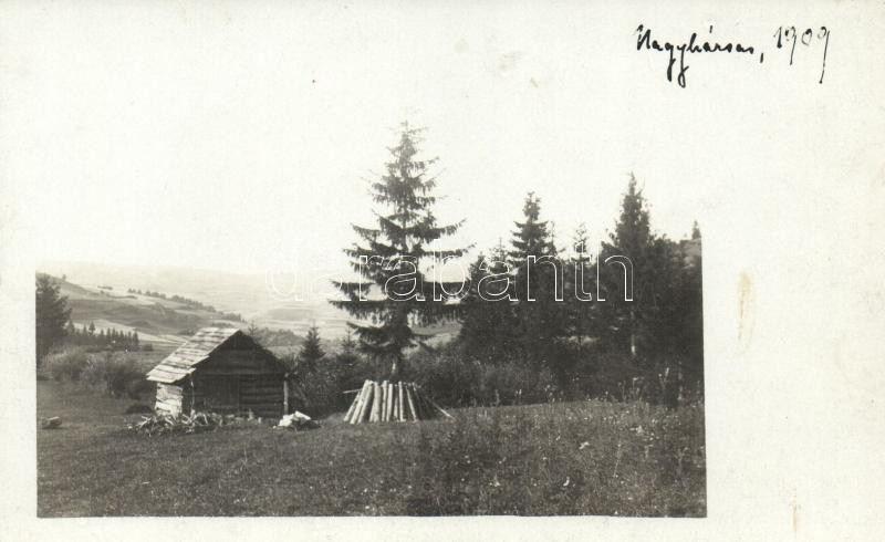 1909 Nagybánya, Baia Mare; kunyhó a hegyen / cottage on the mountain, ... https://www.darabanth.com/de/253-Fernauktion/253.0/Topographische-Postkarten-und-Lose/Siebenburgen~6/1909-Nagybanya-Baia-Mare-kunyho-a-hegyen-cottage-on-the-mountain-photo~II1224503