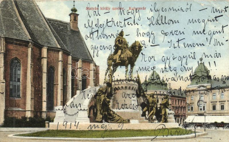 Kolozsvár, Cluj; Mátyás király szobor / statue (EK) https://www.darabanth.com/de/253-Fernauktion/253.0/Topographische-Postkarten-und-Lose/Siebenburgen~6/Kolozsvar-Cluj-Matyas-kiraly-szobor-statue-EK~II1226485