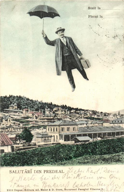 Predeal, repülő férfi / flying man (EB) https://www.darabanth.com/de/253-Fernauktion/253.0/Topographische-Postkarten-und-Lose/Siebenburgen~6/Predeal-repulo-ferfi-flying-man-EB~II1229124