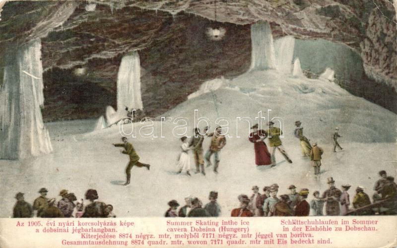 Dobsina, Dobsiná; az 1905. évi nyári korcsolyázás képe a jégbarlangban... https://www.darabanth.com/de/253-Fernauktion/253.0/Topographische-Postkarten-und-Lose/Slowakei~7/Dobsina-Dobsina-az-1905-evi-nyari-korcsolyazas-kepe-a-jegbarlangban-picture-of-the-skati~II1223190