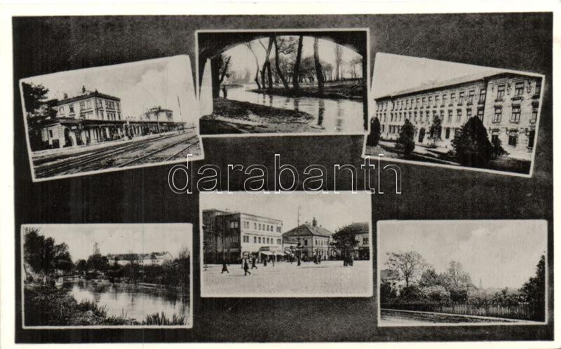 Beschreibung: Érsekújvár, Nove Zamky, Mozaik vasútállomással / multi-view with railway station