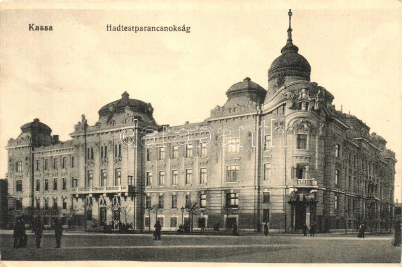 Kassa, Kosice; Hadtesparancsnokság, leporelló képeslapfüzetből kivágva... https://www.darabanth.com/de/253-Fernauktion/253.0/Topographische-Postkarten-und-Lose/Slowakei~7/Kassa-Kosice-Hadtesparancsnoksag-leporello-kepeslapfuzetbol-kivagva-army-corps-headquarte~II1227958