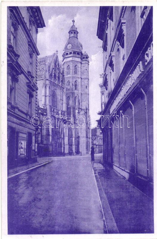 Beschreibung: Kassa, Kosice; Malom utca, bank / Mlynská ul. / street, bank 'vissza' So. Stpl