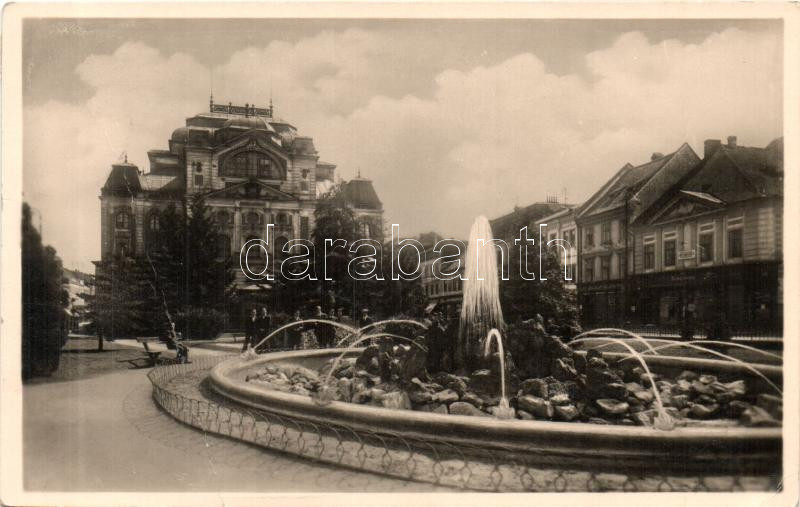 Beschreibung: Kassa, Kosice; színház, Grassmann üzlete / theatre 'vissza' So. Stpl (fa)