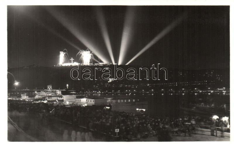 Beschreibung: 1938 Budapest XI. Citadella, XXXIV. Nemzetközi Eucharisztikus Kongresszus, tűzijáték, éjszaka