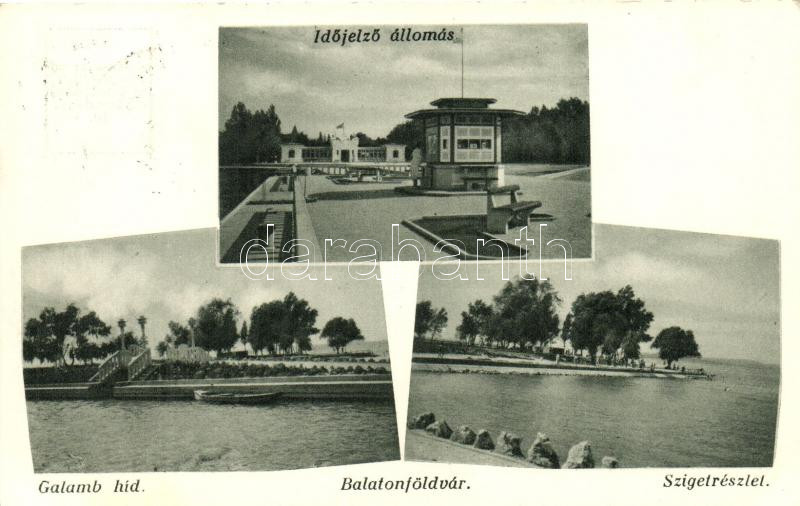 Balatonföldvár, Időjelző állomás, Galamb híd, Szigetrészlet https://www.darabanth.com/de/253-Fernauktion/253.0/Topographische-Postkarten-und-Lose/Ungarn~5/Balatonfoldvar-Idojelzo-allomas-Galamb-hid-Szigetreszlet~II1228257