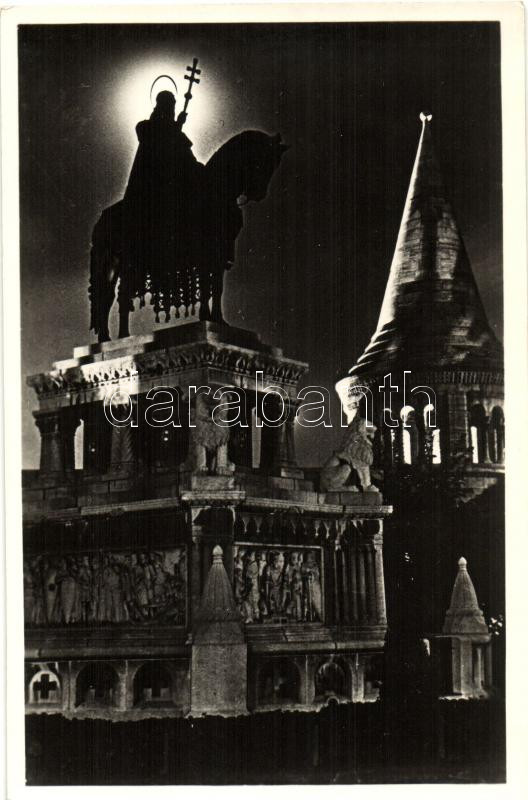 Budapest I. Vár, Szent István szobor, éjszaka https://www.darabanth.com/de/253-Fernauktion/253.0/Topographische-Postkarten-und-Lose/Ungarn~5/Budapest-I-Var-Szent-Istvan-szobor-ejszaka~II1223211