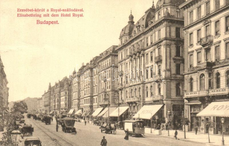 Budapest VII. Erzsébet körút, Royal-szálloda, villamos (Rb) https://www.darabanth.com/de/253-Fernauktion/253.0/Topographische-Postkarten-und-Lose/Ungarn~5/Budapest-VII-Erzsebet-korut-Royal-szalloda-villamos-Rb~II1229923