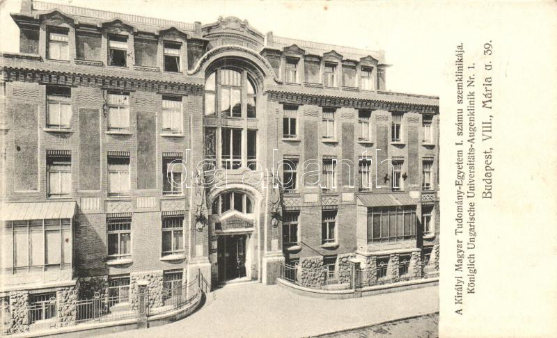 Beschreibung: Budapest VIII. Királyi Magyar Tudományegyetem I. számú szemklinikája; Mária utca 39.