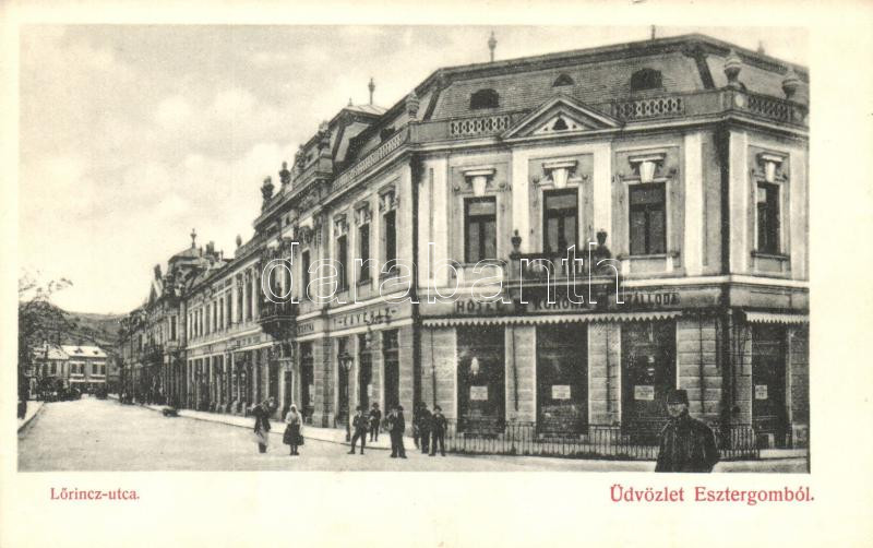 Beschreibung: Esztergom, Lőrinc utca, Korona Szálloda és Kávéház