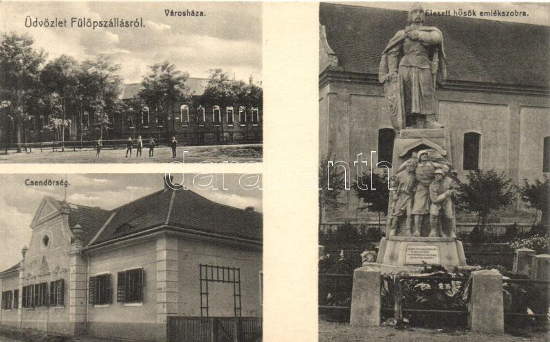 Beschreibung: Fülöpszállás, Városháza, Elesett hősök emlékszobra, Csendőrség