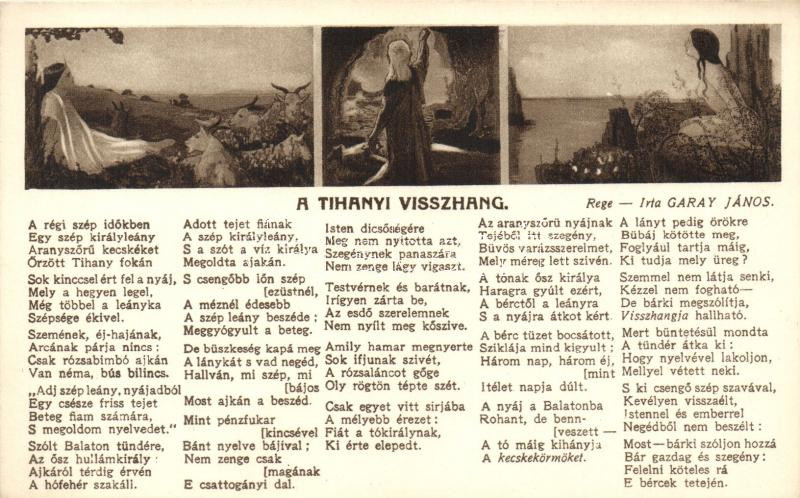 Tihany, 'Tihanyi visszhang', Garay János regéje, az Állami K... https://www.darabanth.com/de/253-Fernauktion/253.0/Topographische-Postkarten-und-Lose/Ungarn~5/Tihany-Tihanyi-visszhang-Garay-Janos-regeje-az-Allami-Kikoto-varocsarnokanak-freskoi-~II1223252