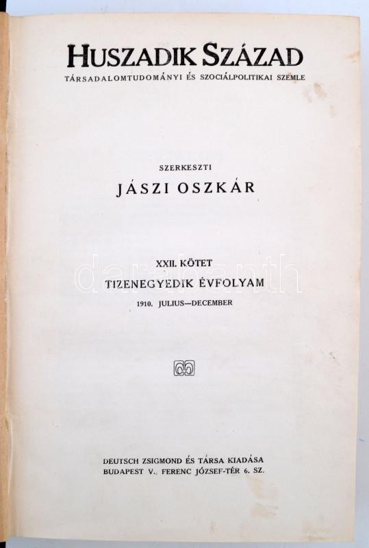 1910 Huszadik század. Társadalomtudományi és Szociálpolitikai Szemle. ... https://www.darabanth.com/de/254-Fernauktion/254.0/Andere-Sammelgebiete/Bucher-Geschichte~400017/1910-Huszadik-szazad-Tarsadalomtudomanyi-es-Szocialpolitikai-Szemle-SzerkJaszi-Oszkar-14~II1219174