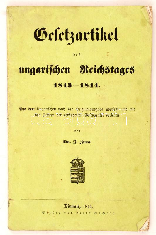 Gesetzartikel des ungarischen Reichstages 1843-1844. Aus dem Ungarisch... https://www.darabanth.com/de/254-Fernauktion/254.0/Andere-Sammelgebiete/Bucher-Geschichte~400017/Gesetzartikel-des-ungarischen-Reichstages-1843-1844-Aus-dem-Ungarischen-ubersetzt-Tirnau-1844-W~II1238247