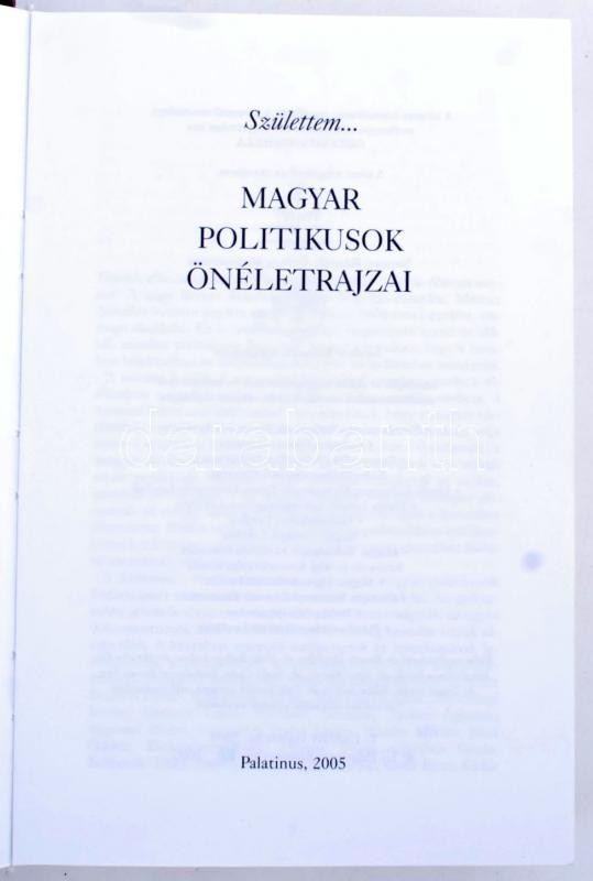 Születtem... Magyar politikusok önéletrajzai. Szerkesztette Csiffáry G... https://www.darabanth.com/de/254-Fernauktion/254.0/Andere-Sammelgebiete/Bucher-Geschichte~400017/Szulettem-Magyar-politikusok-oneletrajzai-Szerkesztette-Csiffary-Gabriella-Bp-1995-Palati~II1234187