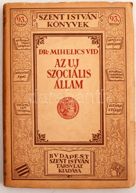 Mihelics Vid dr.:Az új szociális állam. Társadalompolitikai és gazdasági rendelkezések Európa legújabb alkotmányaiban. Bp., 1931, Szent Isstván-Társulat. Kiadói papír kötésben.