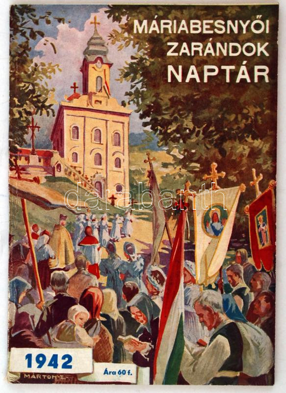 Máriabesnyői zarándoknaptár 1942. Bp., é.n., Kapucinus rendház. 96p. K... https://www.darabanth.com/de/254-Fernauktion/254.0/Andere-Sammelgebiete/Bucher-Religion~400031/Mariabesnyoi-zarandoknaptar-1942-Bp-en-Kapucinus-rendhaz-96p-Kiadoi-papirkotesben~II1222850