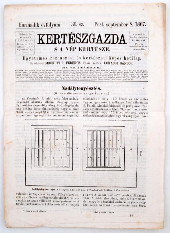 1867 Kertészgazda s a nép kertésze, egyetemes gazdászati és kertészeti képes hetilap. Szerk.: Girókuti P. Ferenc. 3. évf. 36. sz. Pest, Emich Gusztáv. Érdekes írásokkal, illusztrációkkal