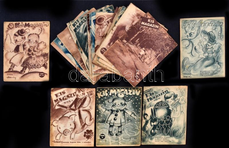 1940 a Kis Magazin, a Színházi Élet magazin gyermekeknek szóló mellékletének több lapszáma az 1940. évi folyamból: 1., 8., 13-14., 19-20., 23-26., 28-34., 36-42., 44-46., 48-49. sz., összesen 29 db. Érdekes írásokkal, papírkötésben, jó állapotban.