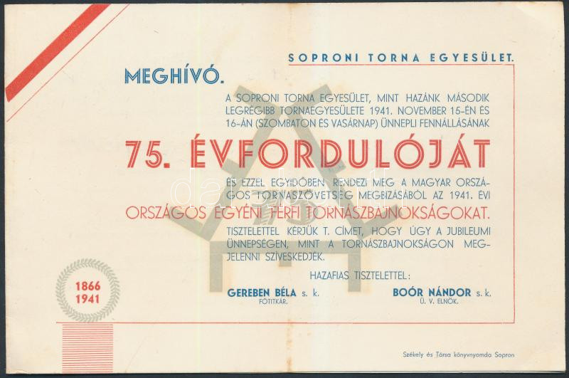 1941 a Soproni Torna Egyesület meghívója az egyesület 75. évfordulós ü... https://www.darabanth.com/de/254-Fernauktion/254.0/Andere-Sammelgebiete/Drucksachen~400010/1941-a-Soproni-Torna-Egyesulet-meghivoja-az-egyesulet-75-evfordulos-unnepsegre-a-fovednC3~II1236107